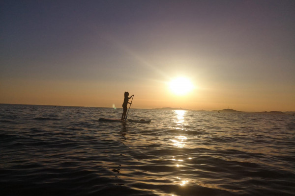 Une bonne balade en stand up paddle sur une eau translucide, une mer d’huile, un coucher de soleil magnifique… Décompression garantie en se réappropriant le littoral déserté par les hordes de la journée.